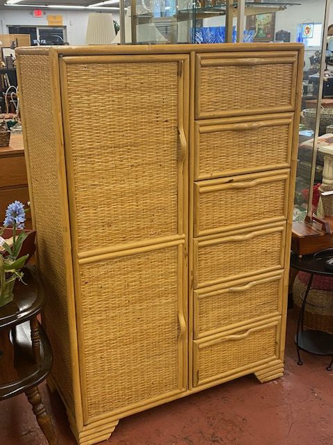 Woven Bamboo Armoire - six drawers & four shelves for lots of storage - narrow