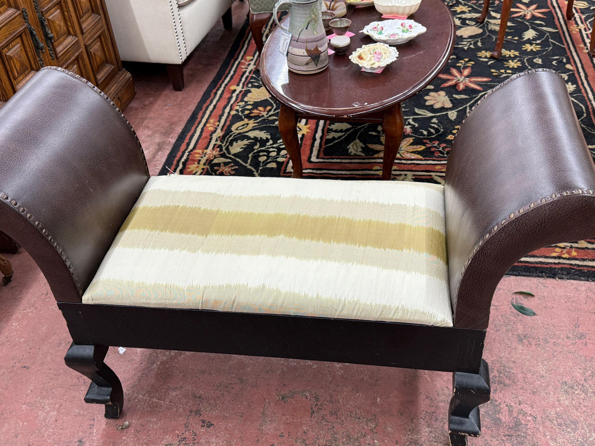 Modern Upholstered & Wood Bench - black wood, brown, & cream colored fabric