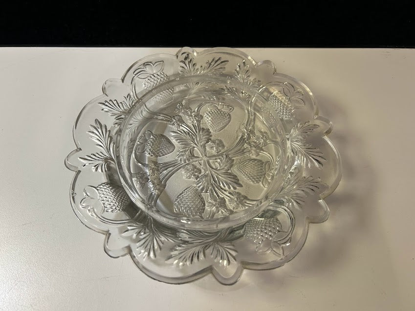 Ornate strawberry motif butter dish.