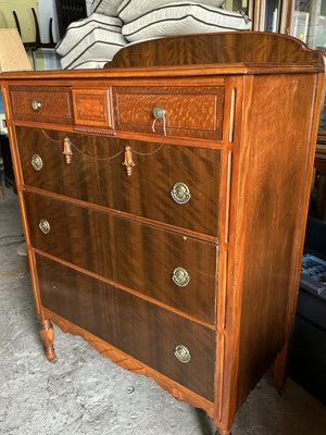 Mahogany & Cherry inlaid antique dresser, three large and two small drawers