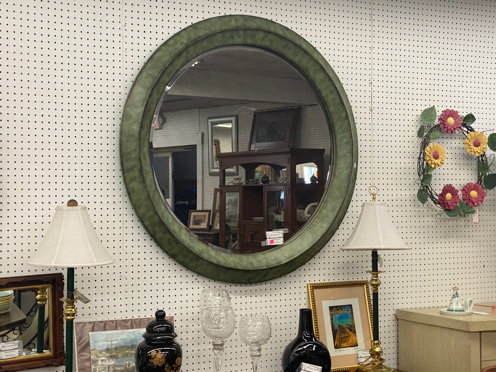 Modern Round Metal Mirror with Beveled Glass 42" diameter