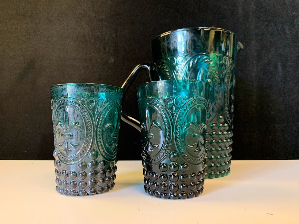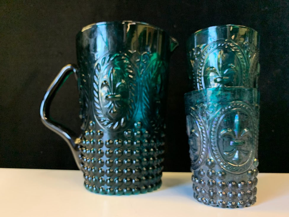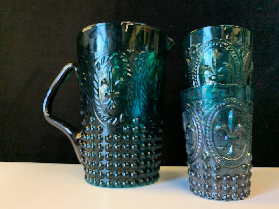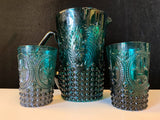 Vintage Green Pitcher Set with Two Glasses